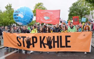 Ein NaturFreunde-Transparent, hinter dem sich zahlreiche Demonstranten versammelten, forderte das Abschalten der Kohlekraftwerke. Gemeinsam mit der Naturfreundejugend hatten die NaturFreunde zudem Schilder mit der Botschaft "Klimaschutz statt Kohleschmutz" verteilt und an ihrem Infostand über NaturFreunde-Positionen zum Kohleausstieg informiert. Uwe Hiksch aus dem NaturFreunde-Bundesvorstand hatte die Demonstration für das "Stop-Kohle!"-Bündnis angemeldet.